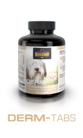 Ernährungsphysiologische Zusatzstoffe: Vitamin C 2.750 mg; Vitamin E 5.000 mgDERM-Tabs sind eine effektive Kombination verschiedener Nährstoffe, die sich in ihrer positiven Wirkung auf die Gesundheit und Qualität von Haut und Fell wirksam ergänzen: