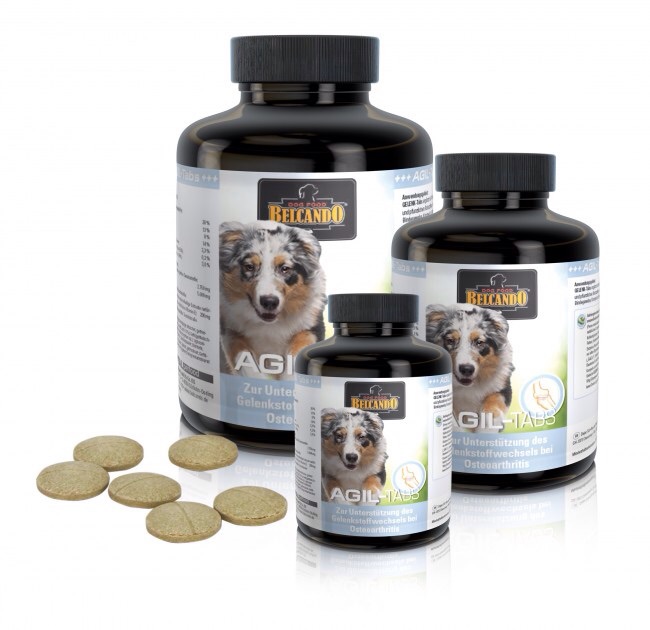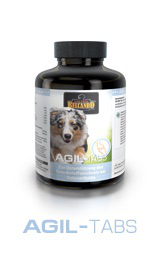AGIL-Tabs ergänzen die Versorgung des Hundes gezielt mit Nährstoffen aus Meerestieren und pflanzlichen Rohstoffen, die für ihre unterstützende Wirkung auf die Funktion von Bindegewebe, Knorpel und Gelenken bekannt sind: